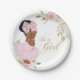 Boules en papier baby shower rose et or princesse avec adorable petite fille africaine portant un mignon tutu princesse rose et arc-en-cheveux sur un joli arrière - plan floral rose et or. Ces assiettes en papier baby shower rose et or sont facilement customisées pour votre événement en ajoutant simplement les détails de votre événement.