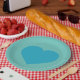 Cette assiette présente un coeur légèrement turquoise. Idéal pour un bébé garçon douche, anniversaire ou poitrine.