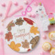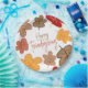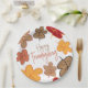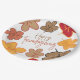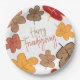 Happy Friendsgiving Papier Plaques avec des feuilles colorés de feuillage automne whimsical coloré. Fun Friendsgiving maison produits de divertissement.