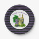 Placez votre table de fête avec style avec cette assiette en papier conçue pour la dégustation de vin. Customisez cette assiette avec vos propres mots ou logo ou design ou acheter comme indiqué avec le dessin unique du raisin, du verre de vin et de la bouteille au centre et le texte Dégustation de vin.