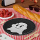 Plaque papier de fête d'Halloween illustrée d'une empreinte fantôme.