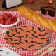 Plaque papier de fête d'Halloween illustrée avec une impression de chauve-souris. Customisez cet objet ou achetez tel quel. Image stock vecteezy.com