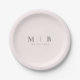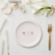 Assiette en carton. Élégant & Simple Contemporain Blush & Grey Monogramme. Date.