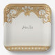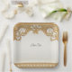 Assiettes En Carton Plaque en papier or Orné de perles blanches