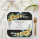 Vous adorerez ces plaques en papier noir et blanc audacieuses que vous pourrez personnaliser pour votre journée spéciale ! Gros beaux tournesols autour des bords et votre texte souhaité au milieu!