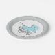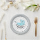 Plaque de papier baby shower douce, faite dans un gris clair avec pois blanc et blanc solide à l'intérieur de l'assiette. Graphiques d'un vieux poussin bleu turquoise à l'allure désuète, orne le milieu blanc, de l'assiette. Customisez si vous voulez ajouter du texte à cette belle plaque de papier baby shower. Des invitations assorties et des serviettes en papier sont disponibles.
