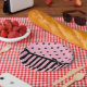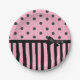 Assiettes En Carton Plaque en papier rayé rose foncé et noir Polka