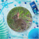 Photo d'un bébé lapin dans la nature. Nous avons aussi des dessous de verre, serviettes et invitations assortis.