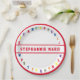 Le design présente l'alphabet dans un design encerclant brillant et coloré. Le nom du bébé est affiché en lettres rouge vif sur le centre. Tout le design est bordé de rouge. Conçu pour être coordonné avec la "collection de Baby showers ABC".