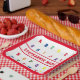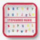 Le design présente l'alphabet en papier pochoir coloré et lumineux, comme celui des magnets du réfrigérateur que nous connaissons tous ! Le nom du bébé (ou date d'échéance - votre choix) est affiché en lettres rouges et vives au centre du design. Parfait pour un Baby shower à thème ABC !