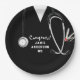 Plaques de remise des diplômes de l'école de médecine créative avec gommages d'hôpitaux noirs, stéthoscope et drôle couteau suisse. Pour personnaliser modifier le texte pour ajouter le nom du médecin.