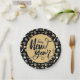 Joyeuse fête du Nouvel An - arrière - plan noir, baiser moi, cravate arc, casquette argent et or, bouteille de champagne et boisson, minuit horloge