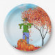 Cette plaque de papier de saison d'automne a été créée en superposant une variété de graphiques de saison d'automne. L'épouvantail et les citrouilles sont superposés sur un paysage avec des feuilles d'automne sur un chêne. Un tournesol a été ajouté au casquette épouvantail, et des feuilles oranges suivies de deux grands citrouilles. Cette plaque de papier est disponible en deux tailles, choisissez la taille qui correspond à vos besoins. N'importe qui aimerait cette plaque en papier, parfaite pour les rassemblements d'automne, le bazar de l'église ou la fête des enfants.