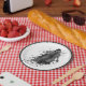 Plaques de papier à thème Halloween en blanc, avec un anneau gris et noir autour du bord extérieur et aquarelle d'un fantôme déplaisant fait en noir. Customisez cette plaque pour ajouter votre propre texte. Des serviettes et des tasses à papier et d'autres articles de fête sont disponibles.
