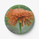 Cette plaque en papier présente une magnifique zinnia orange. Idéal pour les fêtes, les douches et les pique-niques !