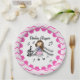 Les plaques à papier de joueur de violon comporte un chiffre de bâton conception de joueur de violon de fille avec une frontière large des rayures de chevron de rose, de rose-clair, de gris, et blanc.