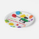 Une conception de plaque à papier d'assortiment pour celle badine la fête d'anniversaire de paintball ! Elle a la version d'enfants de l'arme à feu de paintball avec des flocs colorés de peinture pour l'arrière - plan. Le texte d'une manière amusante lit "chargent !" ce qui est un jeu de mots de calembour sur charger l'arme à feu de paintball avec des granules de paintball avec charger la plaque à papier avec la nourriture !