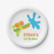 Approvisionnements de partie en plaques à papier avec l'illustration d'injecter l'arme à feu d'eau dans une palette de couleur d'orange, de vert de chaux, de jaune et de bleu ! Grand pour assortir votre fête d'anniversaire orientée de l'eau avec des échanges de coups de feu de l'eau ! Ajoutez votre message dans le modèle des textes fourni.