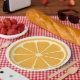 Une partie du motif vintage de cuisine, caractéristiques de conception ce de plaque à papier une tranche orange. Le regard frais et moderne est grand pour des pique-niques d'été ou des bbqs de jardin !
