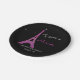 Plaques à papier orientées fascinantes de fête d'anniversaire de sweet sixteen de Paris, faites dans le noir, avec des graphiques des parties scintillantes roses regardant Tour Eiffel et les étoiles blanches de scintillement. Personnalisez le texte blanc et rose fait sur commande pour lire ce que vous voulez. Les serviettes et les invitations assorties sont disponibles.