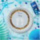 Les parties scintillantes et la polka adorables d'or de faux ont pointillé les plaques à papier bleues pour le l'un ou l'autre un baby shower. Ils disent, "son un garçon" en ce moment mais vous peut juste ajouter votre propre texte dans le secteur de personnaliser.