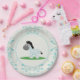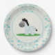 Fêtez votre arrivée prochaine avec ces plaques de papier fête. Ce design présente un zèbre bleu bébé avec un arrière - plan décoratif fleuri aux couleurs turquoise et bleu clair.