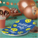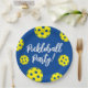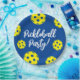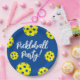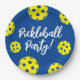Plaques de fête d'anniversaire de Pickleball (jetable). Design amusant avec la rencontre avec des amis et la famille. Personnalisez avec votre texte. Bleu arrière - plan et boules jaunes. Idéal aussi pour tournoi, événement club, soirée match, célébrations, réunion, barbecue, jour enfants et plus.