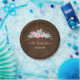 Plaques en papier Fête des mariées tendance avec une délicate illustration florale avec Succulents et feuilles sur un arrière - plan rustique en bois foncé. Ce design est élégant mais ludique et attrayant, parfait pour une mariée avec un grand sens du style. Le thème est parfait pour l'été ou l'automne et peut s'adapter à un jardin, botanique, floral ou un événement rustique.
