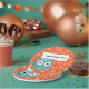 Cette mignonne plaque de papier de fête animalière en bois est parfaite pour une fête d'anniversaire pour enfants ou d'autres événements spéciaux. Ce dessin présente un adorable hibou bleu contre un arrière - plan orangé à motifs floraux. Cela se coordonne avec d'autres objets de notre collection Woodland Whimsy. Utilisez le champ de remplissage de la zone vide pour ajouter votre propre texte à la bulle vocale.