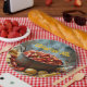 Plaques de fête en papier avec l'image de la cuisine de langouste avec pommes de terre et maïs pour une ébullition estivale de langouste.