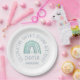 Célébrez l'anniversaire de votre petit avec cette jolie illustration de l'arc-en-ciel boho avec un coeur mignon dans les tons vert menthe et bleu avec un nom personnalisable.