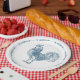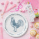 Un coq apporte une touche rustique mais élégante à ces assiettes en papier.