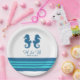 Élégante et classique Plaques en papier Mariage de cheval de mer avec une paire de hippocampes simples et une gamme de rayures en bleu marine foncé et turquoise. Ces assiettes à thème de plage nautique peuvent être facilement customisées avec vos détails mariages. Pour plus d'options de personnalisation, cliquez sur le bouton Customiser.