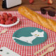 Un adorable chat blanc sur un arrière - plan vert. Ce design semble vraiment efficace sur ces Plaques de Papier