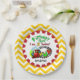 Les plaques de papier de 3e anniversaire du thème du train comportent une locomotive, des voitures et du caboose sur une voie de train ovale à vapeur avec un texte qui dit Choo Choo! Une bordure rayée jaune et blanc de chevrons avec un contour rouge circulaire, vert, rouge et jaune qui lit Birthday Fun I am 3 Today, et une zone où vous pouvez ajouter le nom de l'enfant d'anniversaire avant de commander font de ces plaques de papier à thème de train une bonne place pour ce thème de train troisième anniversaire!