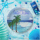 Plaques en papier de Noël côtier. Belle scène de palmiers ornée de lumières colorées des vacances sur la plage. Idéal pour fêter les vacances à la plage ou sous les tropiques.
