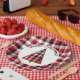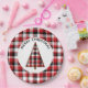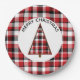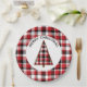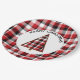 Ces plaques en papier de Noël de vacances présentent un plaid rouge, blanc et noir pour l'arrière - plan. Un cercle blanc apparaît au centre où se trouve un sapin de Noël rouge, blanc et noir. Ce design ajoutera une touche vintage à votre table de vacances. Copyright Kathy Henis