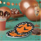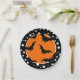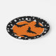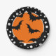 La plaque de papier de fête d'Halloween est présentée dans un design pois noir et blanc avec une impression de chauve-souris. Customisez cet objet ou achetez tel quel. Montré en taille 7". . Image stock
