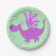 Plats de fête amusants avec un grand dragon rose et violet volant dans un ciel vert. Personnalisez avec votre texte, pour la plupart des célébrations. Idéal pour les enfants de tous âges.