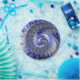 Cette belle plaque en papier rond présente un design fractal en spirale abstrait dans les tons blanc, gris et bleu.