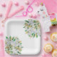 L'assiette en papier de fête est en blanc avec une empreinte artistique de beaux lys blancs. Des serviettes en papier assorties sont disponibles. Customisez cet objet ou achetez tel quel. Image stock