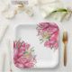 Plaque de papier de fête est montrée avec une impression d'art de beaux lys roses. Des serviettes en papier assorties sont disponibles. Customisez cet objet ou achetez tel quel. Image stock