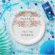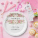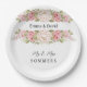 Les plaques en papier mariage sont affichées dans une belle impression fleurie rose avec des noms d'échantillons personnalisés dans un texte en noir. Customisez cet article et changez les noms d'exemples dans le vôtre. Image stock freepik.com