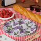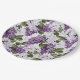 La plaque de papier de fête est montrée dans la taille de neuf pouces avec une belle impression de fleurs lilas. Customisez cet objet ou achetez tel quel. Vendu en paquet de huit. Impression sous licence