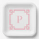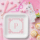 Bordure carré de style blanc et rose de style grec décoratif et monogramme de serif moderne sur une plaque de papier carré. Customisez ce design en éditant la jolie nuance de rose ou de blanc dans l'image graphique de conception géométrique arrière - plan et classique. Modifiez le style, la taille ou utilisez votre couleur préférée. Associez cette teinte de rose branchée à la fête d'anniversaire de votre fille.