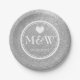 Plaques en papier parties scintillant argent brillant pour la fête de mariage. Ajoutez votre propre monogramme et la date du mariage. Fournitures jetables de la fête de dîner imprimé pour l'élégante fête de mariage. Design élégant avec coeur d'amour. Éclairage et brillants imprimés.