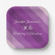 Un motif de cinq nuances de rayures diagonales violettes décore cette plaque de papier unique et amusante fête. Bien que la valeur par défaut indique "90e anniversaire", vous pouvez facilement modifier le texte pour le nom, le nombre d'années et l'événement. Très féminine et féminine ! Des serviettes en papier assorties disponibles sur zazzle à SocolikCardShop. Tous droits réservés © 2014 Alan & Marcia Socolik.