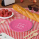 Un solide arrière - plan rose chaud décore cette plaque de papier unique et amusante fête. Bien que la valeur par défaut indique "100e anniversaire", vous pouvez facilement modifier le texte pour le nom, le nombre d'années et l'événement. Très féminine et féminine ! Des serviettes en papier assorties sont disponibles sur zazzle à SocolikCardShop. Tous droits réservés © 2014 Alan & Marcia Socolik.
