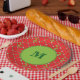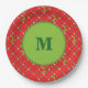 Plaques de papier rouge et vert Holly Monogram. Ajoutez facilement votre texte à cette belle assiette de vacances !