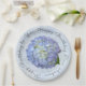 Plaques de papier à papier à fleurs bleu clair hydrangea à utiliser pour la fête d'anniversaire ou toute occasion. Le style de police de script tourne tout autour du bord en disant, "Joyeux anniversaire pour vous, heureux anniversaire cher (nom)".